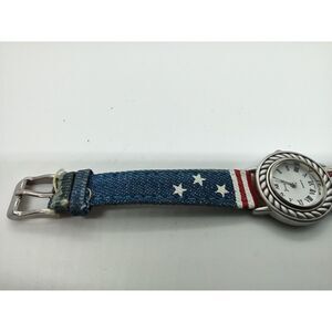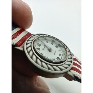 Jennie B Vintage Ladies Watch - This vintage watch is actually really cute with the band that it has. The crystal is in very good condition. The watch has a brand new battery and is running great. The band has some wear. It is genuine leather. It definitely can still be worn. It is definitely a patriotic band that would possibly come in handy for the summer with 4th of July and many other events. Check out the photos for more details and aspects of the watch.