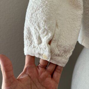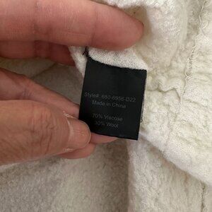 This pre-loved Jennie Kayne cardigan is crafted from a viscose wool blend. It features a crew neck, front button closure, and 3/4 cuffed sleeves. Wear it open or closed for versatile styling. Note: Item is flawed, please see last five pictures for reference.