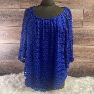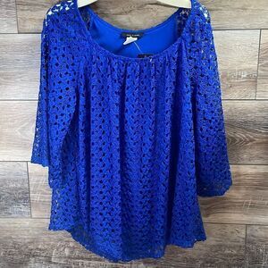 Jennie & Marlis Women’s Royal Blue Lace Overlay Blouse Size Large NWT