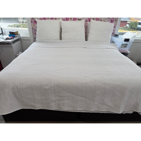 Jennifer Adams White Quilted Bedspread 90x90, Textured Coverlet, Queen/Fulls