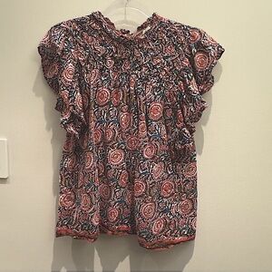 Jennifer And Grace Women's Lattice Yoke Printed Blouse Top Size M