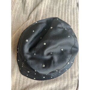 Jennifer Behr Black Rhinestone Satin Bucket Hat