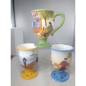 Jennifer Brinley Bistro Coffe Mug Cup Certified International Pedestal Set Of 3