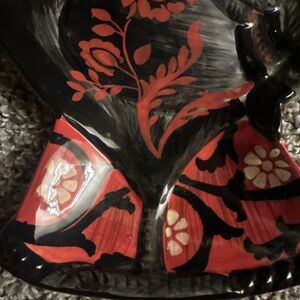 The Jennifer Brinley Certified International Rooster Figural Plate Dish is a decorative porcelain plate designed by Jennifer Brinley. It features a glossy finish and multi-color design, making it suitable for all occasions. This hand wash only plate is perfect for adding a touch of charm to any table setting or collection of decorative cookware and serveware.
