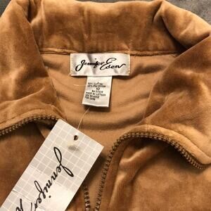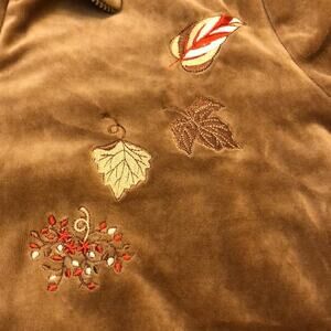 Jennifer Eden Fall Leaves Embroidered Velour Front Zip Jacket Track Vintage