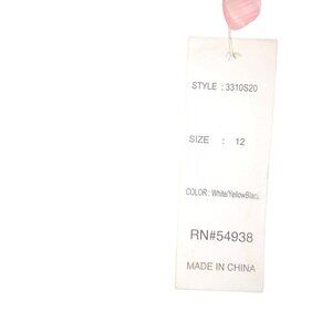 This short-sleeve blazer features a bold abstract print with a button-up front. Crafted from a cotton-spandex blend for durability and comfort, it is lined with polyester for a structured fit. Designed to elevate your wardrobe, it seamlessly combines style and functionality. • Buttoned front closure • Short-sleeve design • Abstract print in white, yellow, and black • Lined with polyester for a structured fit • Cotton-spandex blend shell for durability Top To Bottom = 23 Inches Underarm To Underarm = 19 Inches Size: Womens 12 Condition: New With Tags