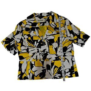 Jennifer Eden Womens Abstract Print Buttoned Short-Sleeve Blazer White/Yellow/Bl