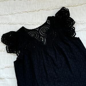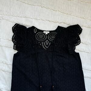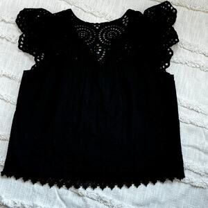 Jennifer & Grace Black Eyelet Flutter Top Size M