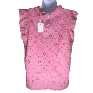 Jennifer & Grace Eyelet Flutter Sleeve Blouse Pink Medium NWT Keyhole Back