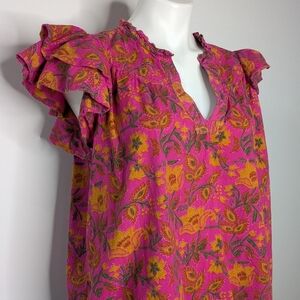 Jennifer Grace Pink Orange Floral Cotton Layered Ruffle Sleeve Top XL. Good condition.