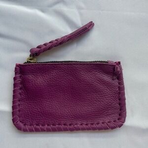 Jennifer Haley Stitched Coin Purse Wallet Made In Mexico Purple Leather Key Ring