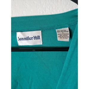 Jennifer Hill Deep V- Neck Cardigan sweater Womens Large Green Made in Jamaica.