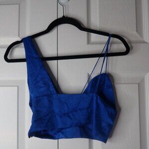 Jennifer Hope Cobalt Blue 100% Silk Asymmetrical Crop Top Women's Size Small S