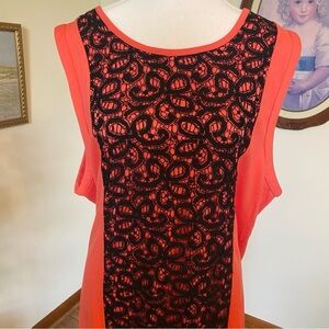 Jennifer Hudson Collection • Orange Sleeveless Sheath Dress w/ Black Lace Sz XL