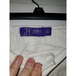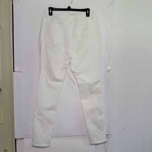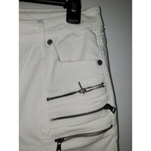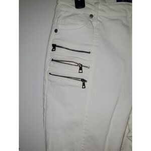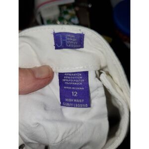 This is a pair of Jennifer Hudson Soho New York leggings. These are a curvy fit with triple zip pockets on each leg. These are a white denim type material 42% rayon, 39% cotton, 18% polyester and 1% spandex. These are your go-to pants for every activity that doesn't require a dress. They are in very nice pre-owned condition. Approximately a 32" waist and 29" inseam.