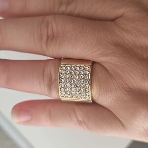 Jennifer LOPEZ Gold Tone And Rhinestones Chunky Stretch Ring size 7.5-8 (see photo)