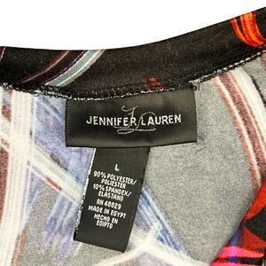 Jennifer Lauren Top Large Colorful Abstract Brushstroke Ruched Tee V Neck Shirt