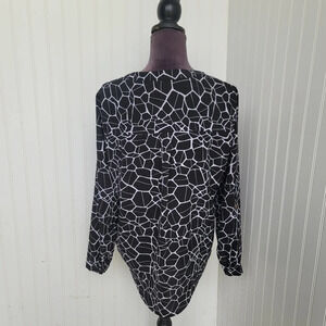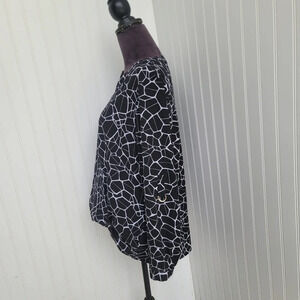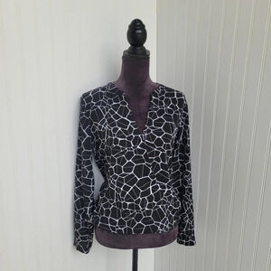 Jennifer Lopes Women’s Top Blouse Animal Print Black White Gold Print V-Neck M