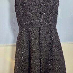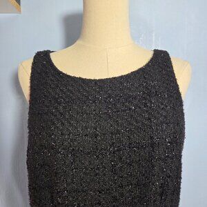 Jennifer Lopez 10 Classic Black Shimmer Tweed Sleeveless Zip Midi Cocktail Dress