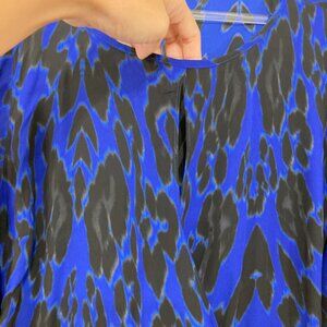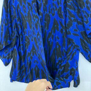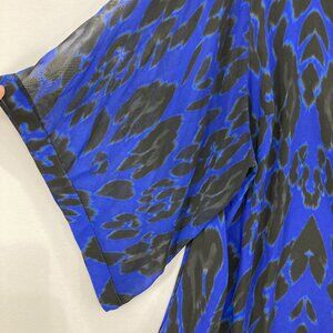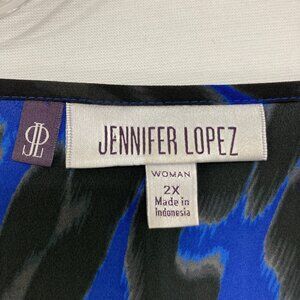 Jennifer Lopez 2X Black Blue Abstract Key Hole Flare Sleeve Relaxed Top Vacation