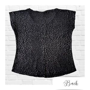 JLo, Jennifer Lopez, Animal Print, Black, Metallic, Scoop Neck, Business Casual, Cap Sleeves, Short Sleeve, Monotone, Versatile, T-shirt, Women’s XL, Plus, Crew Neck, Black T-shirt, Black Tee, Goth, Leopard Print,