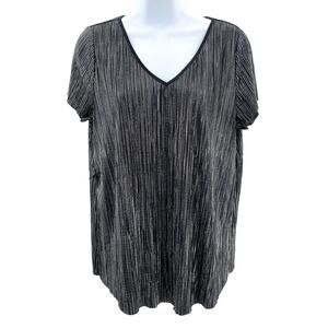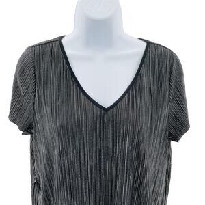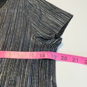 Jennifer Lopez Black Silver Metallic Shiny Short Sleeve Top Blouse Women Sz M