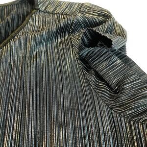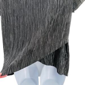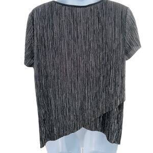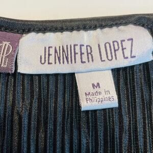 This stylish top blouse is perfect for any occasion! Jennifer Lopez has designed this black metallic shiny short sleeve top blouse with a women's size medium. The top is made of a lightweight material that is comfortable and breathable, making it ideal for any season. The short sleeves and metallic shine give the top a unique and modern look. Great detail in the layered back. This top is sure to make a statement and is sure to be a favorite in your wardrobe.