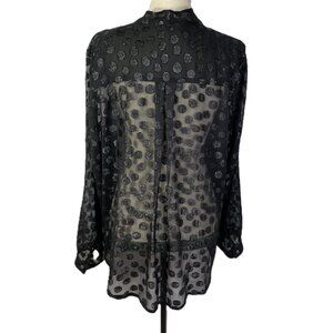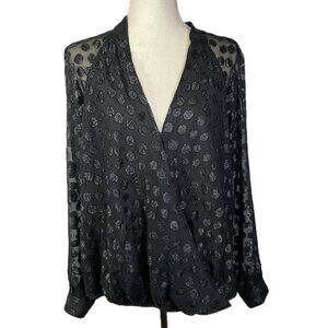 Jennifer Lopez Black Wrap Front Shimmer Sheer Polka Dot Blouse Size XL