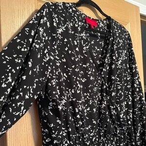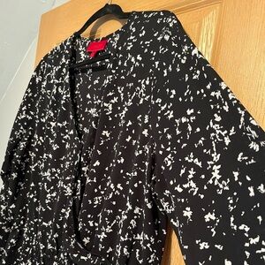Jennifer Lopez Black and White Peplum Patterned Long Sleeve Blouse