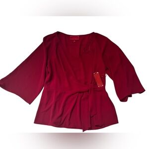 Jennifer Lopez Blouse Red Wrap Top Sheer Women’s Size M