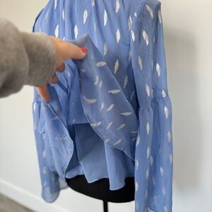 Jennifer Lopez Blue and Silver Sheer Overlay Blouse
