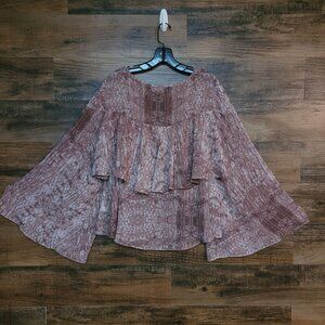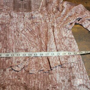 Jennifer Lopez Chiffon Ruffle Flare Sleeve Top L Watercolor Keyhole Neck Boho