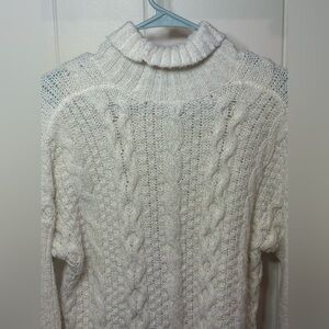 Jennifer Lopez Cream Cable Knit Turtleneck Sweater