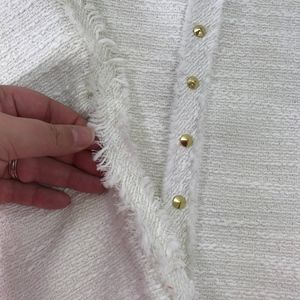 Jennifer Lopez Cream Side Fringe Back Zipper Skirt