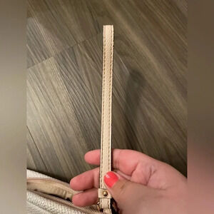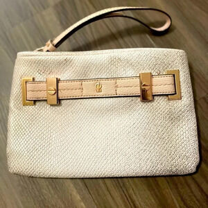 This sophisticated clutch by Jennifer Lopez features a chic cream and pink color palette, highlighted by its textured finish. The elegant strap detail adds a touch of refinement, making it a perfect accessory for any stylish occasion. Its compact design ensures both style and convenience.