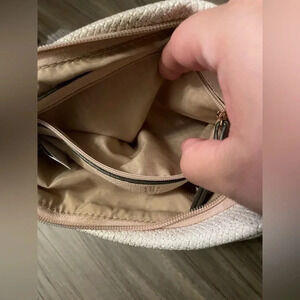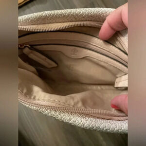 Jennifer Lopez Cream and Pink Textured Clutch with Elegant Strap