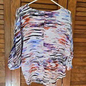 Jennifer Lopez Dolman Sleeve Top Women"s Size Small Colorful Blouse Lightweight