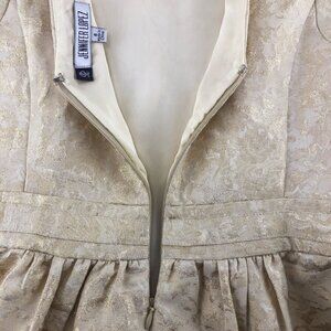 Jennifer Lopez Elegant Cream Shimmering Floral Sleeveless Midi Prom Dress Size 8