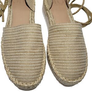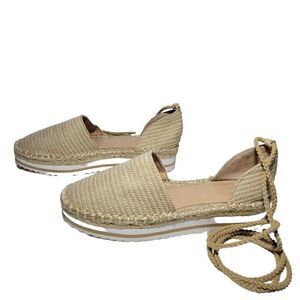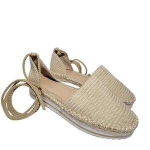 Jennifer Lopez Espadrille Shoes Womens 8 M Larenn Gold Sandals JLO Ankle Ties