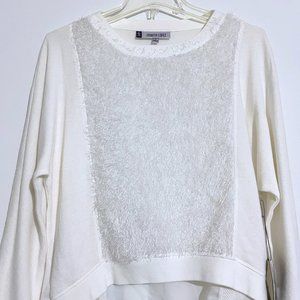Jennifer Lopez Faux Fur Mixed Media Sweatshirt