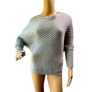 Jennifer Lopez Gray Ribbed Asymmetrical Boat Neck Long Sleeve Sweater Size Small