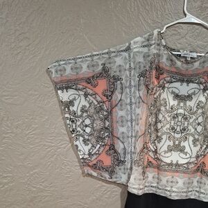 Jennifer Lopez Gray and Pink Graphic 3/4 Sleeve Blouse