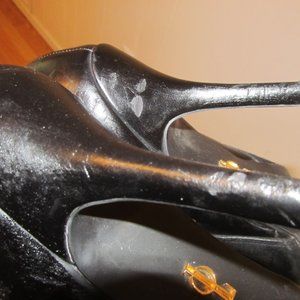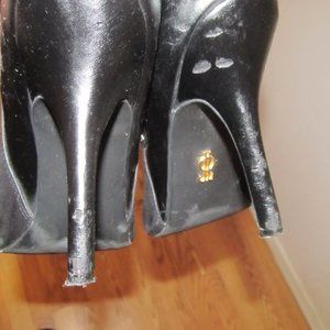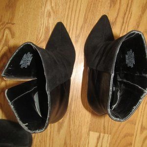 Super Cute boots! Please note that they do have some wear. The tops look good, especially the black sude fronts. Some where on heel, bottom and several marks on the non-suede part near the heels. Also, the lining around the tops on the inside of the boots have a little wear as shown in photos. Women's Size 9.5. They measure about 9.5 inches high and about 9.5 inches from back to front. Still great looking despite a little wear!