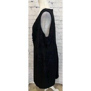 The Jennifer Lopez JLo Women's Plus Black with Lace Overlay Sheath Dress in size 18W is a stylish and elegant choice for any party or cocktail occasion. This dress features a flattering V-neckline, sleeveless design, and a black lace overlay that adds a touch of sophistication. Made from a blend of polyester, spandex, and rayon, this knee-length dress is sure to be comfortable and chic. The classic sheath style and timeless black color make it a versatile option for any woman's wardrobe. 23 inches pit to pit, 40 inch waist and 41 inches long. Smoke free home.