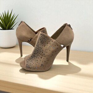 Jennifer Lopez "Jezabelle" Taupe Studded Peep Toe Bootie Heels โ Size 9M