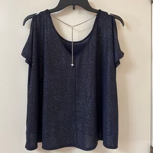 Jennifer Lopez Medium Petite Navy Blue Sparkly Cold Shoulder Peekaboo Sleeve Top