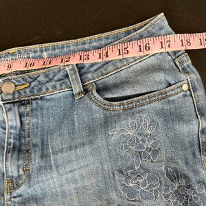 Jennifer Lopez Mid Rise Crop Boyfriend Jeans Size 12 Blue Embroidered Stretch Fl