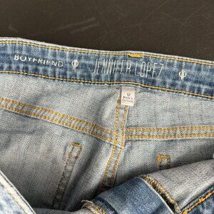 Jennifer Lopez Mid Rise Crop Boyfriend Jeans Size 12 Blue Embroidered Stretch