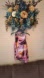 Chic halter blouse with a beaded neckline. Vibrant pink and purple pattern. Perfect for stylish outings.