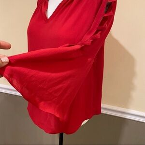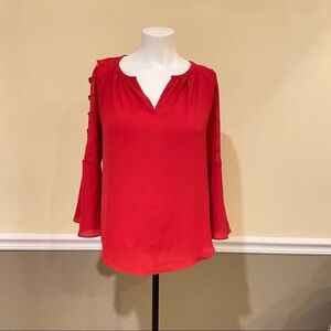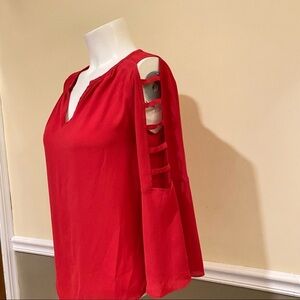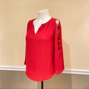 Jennifer Lopez Pink/Red Cold Shoulder Blouse